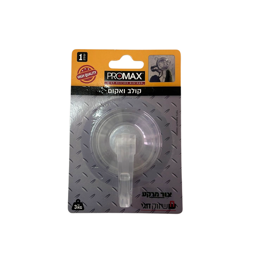 קולב ואקום, ללא צורך בקדיחה, חזק ואיכותי, כושר נשיאה עד 3 ק"ג, לחדרי אמבטיה ומטבח, שקוף