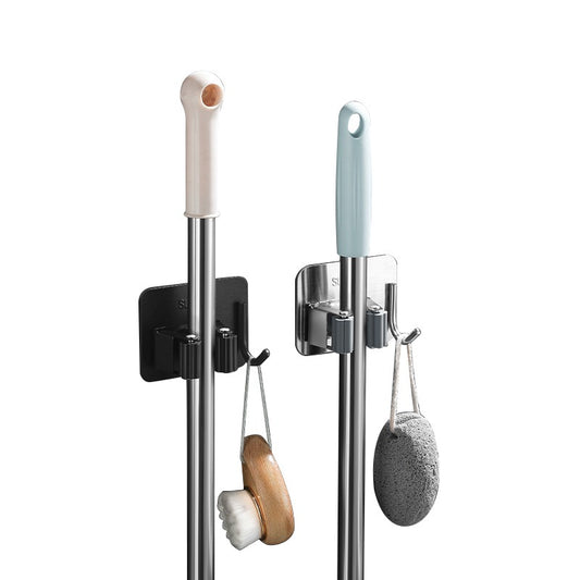 מתלה אוניברסלי נדבק, פתרון נוח ופשוט לארגון כלי ניקוי ואביזרים בבית, ללא צורך בקידוח, צבע כסוף או שחור