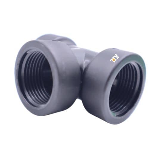 זווית טי פלסטיק קשיח 1" עם הברגה פנימית לחיבור איכותי ועמיד לכימיקלים ודשנים במערכות צנרת