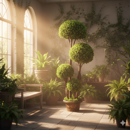 עץ טופיארי מעוצב 4 כדורי עלווה בגובה 120 ס"מ – אלגנטיות ירוקה ומרשימה לכל חלל
