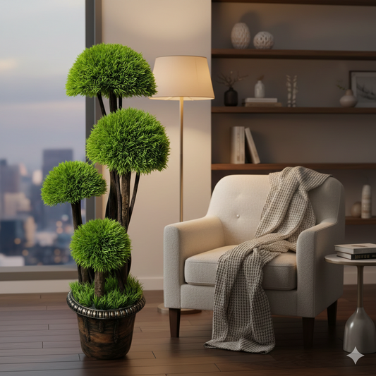 ברוש כדורי מלאכותי מעוצב (120 ס"מ) עיצוב פיסולי רענן לכל פינה בבית