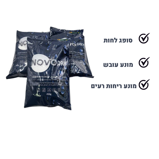 סופג לחות איכותי, 1 ק"ג, מונע לחות, טחב ועובש, לשימוש בארונות, אמבטיות, סירות, מקלטים ועוד