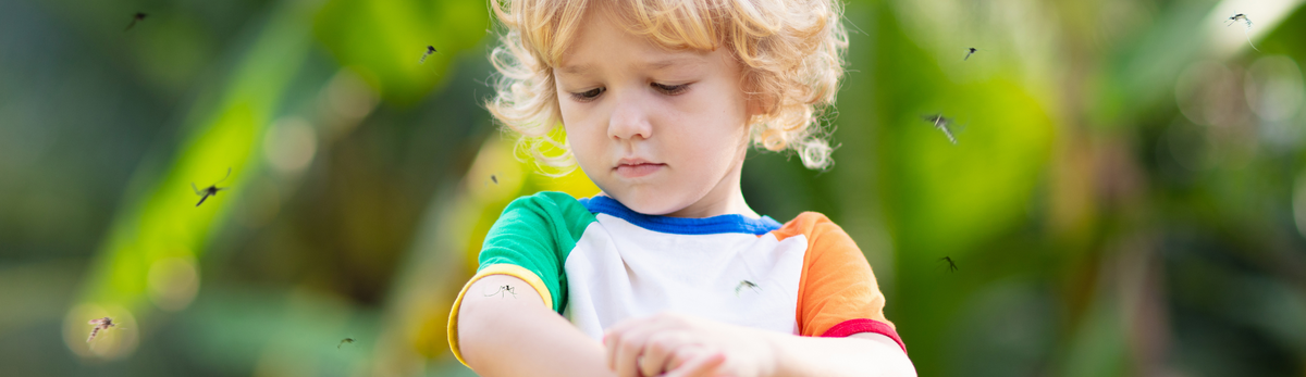 ילד מתגרד מעקיצות יתושים בגינה