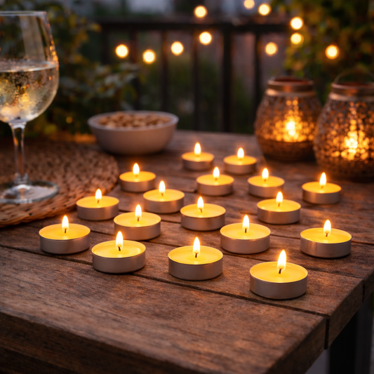 - תוספת עיצובית – נרות יוצרים אווירה חמה ונעימה בגינה או במרפסת.