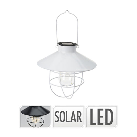 גוף תאורה סולארית 21×32 ס"מ בגוון לבן עם נורת LED חמה - תאורת אווירה אוטומטית לגינה וקמפינג