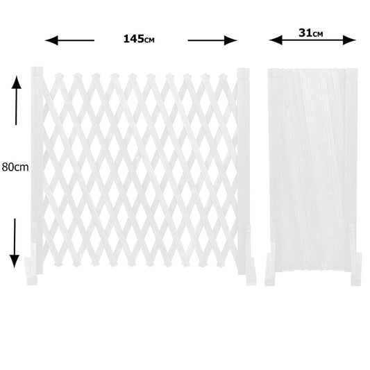 זוג גדרות עץ אקורדיון נפתחות לגינה - רוחב מתכוונן 31-145 ס"מ, גובה 80 ס"מ, גוון לבן