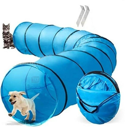 שרוול מנהרה לכלבים - משחק לבע"ח, צבע תכלת, 5מ' קוטר 60 ס''מ