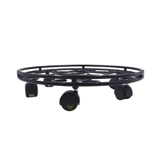 תחתית לעציצים עם 6 גלגלים ממתכת מעוצבת קוטר 44 ס"מ שחורה