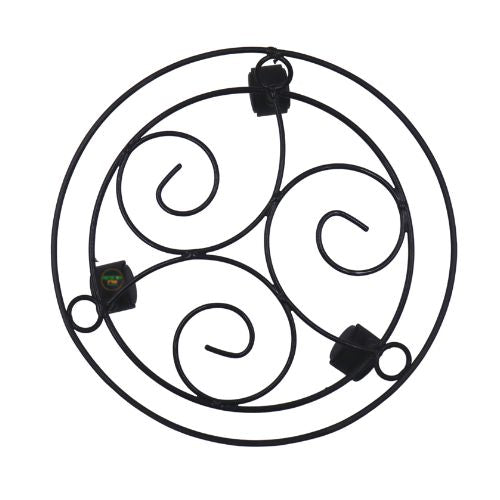 תחתית לעציצים עם 5 גלגלים ממתכת מעוצבת קוטר 36 ס"מ שחורה