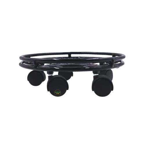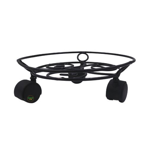 תחתית לעציצים עם 5 גלגלים ממתכת מעוצבת קוטר 28 ס"מ שחורה