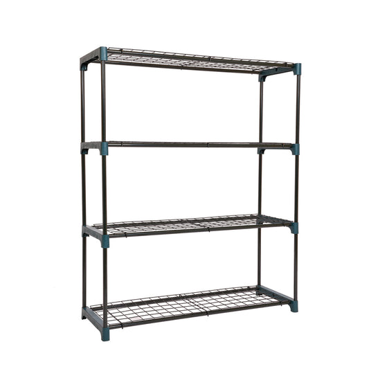 מעמד ארבעה מדפים מודולרי ממתכת בגודל 106X90 ס"מ להעמדה ותצוגה של צמחים בגינה או במרפסת