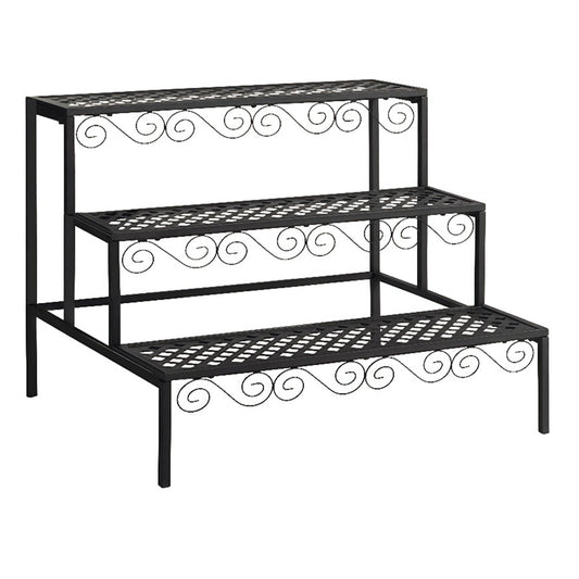 מעמד עציצים מסוגנן מברזל 3 מדפים בצבע שחור - פתרון אלגנטי לעיצוב הגינה והבית!
