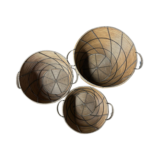 סט 3 סלסלות במבוק דקורטיביות יוקרתיות עם ידיות בגדלים שונים למגוון צרכי הבית