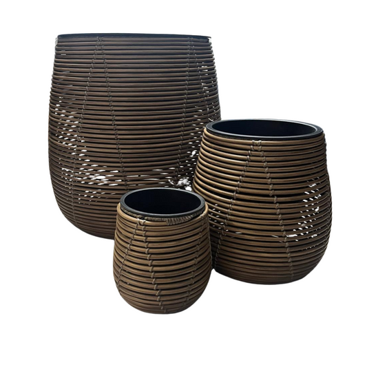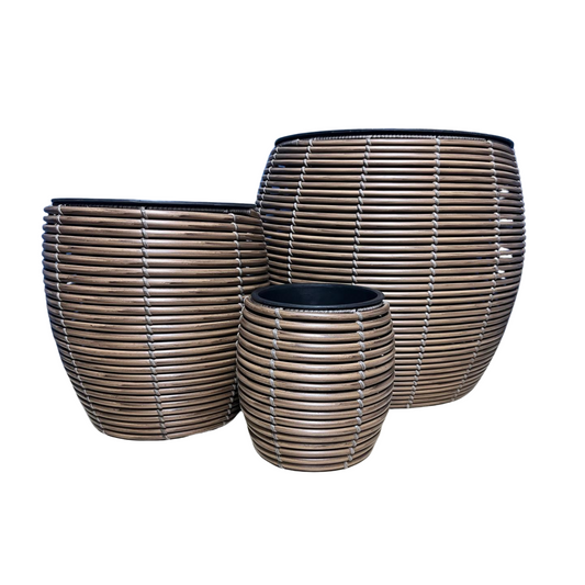 סט 3 עציצי במבוק עגולים בגדלים משתנים כולל מיכל פלסטיק נשלף תואם לגידול צמחים אלגנטי ופרקטי בכל הבית