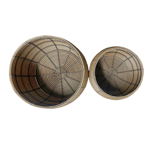 זוג סלסלות במבוק איכותיות מעוצבות בשני גדלים לאחסון מגוון פריטים גדולים ובינוניים בחלל הבית