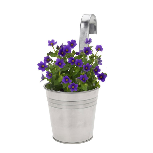 דלי פח מעוטר עם ידית לתלייה על מעקה / גדר / סולם