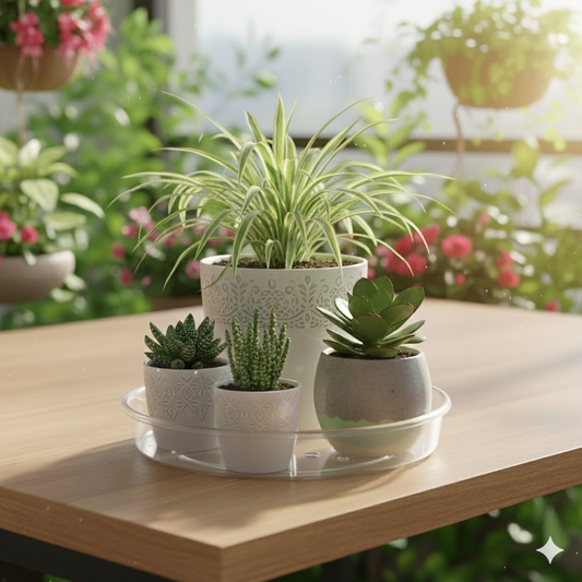 צלחת פולי שקופה לעציץ עגול מפלסטיק איכותי (קוטר 24 ס״מ, גובה 4 ס״מ), תחתית לעציץ לאיסוף נוזלים ולהגנה על משטחים
