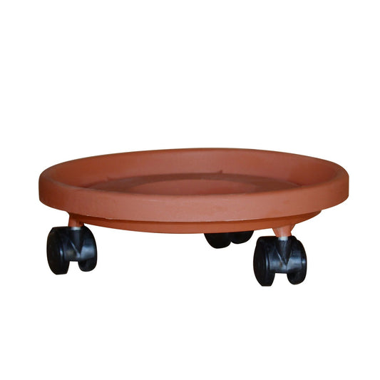 צלחת ניידת לעציץ עגול עם גלגלים - קוטר 30 ס"מ, טרקוטה