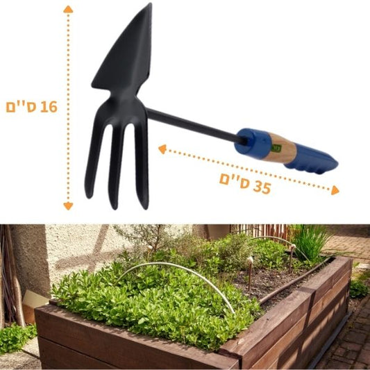 מעדר ידני לגינה, ידית נוחה המונעת החלקה משולבת עץ וגומי, פלדה איכותית לשמירה לאורך שנים