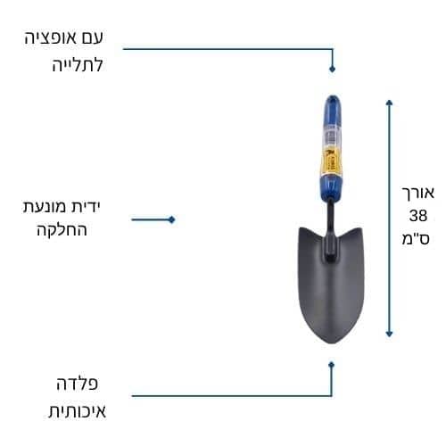 כף גינון קטנה ואיכותית עשויה פלדה - אורך כף + ידית אחיזה 38 ס"מ
