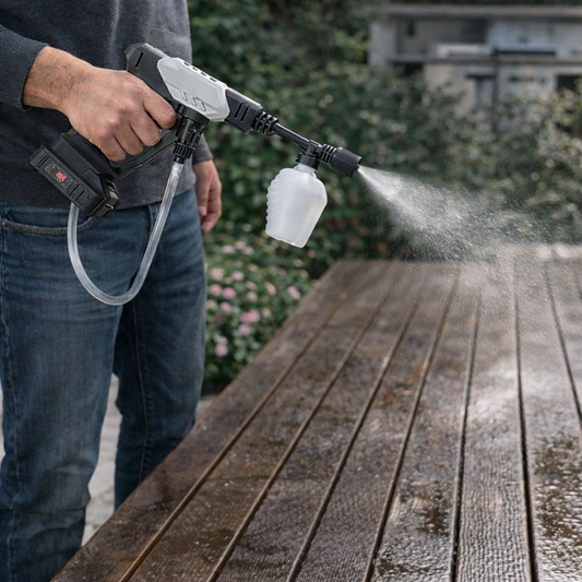 מכשיר לחץ מים 25 בר נטען 20V – עוצמה, ניידות וניקיון מקצועי בכל מקום. כולל סוללה, מטען ו-3 שנות אחריות