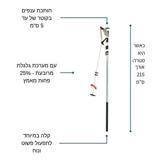 מערכת גיזום עצים טלסקופית, 5 מטר, מקצועית ובעלת ביצועים גבוהים, קלה במיוחד בעלת מנוף כוח ומוט