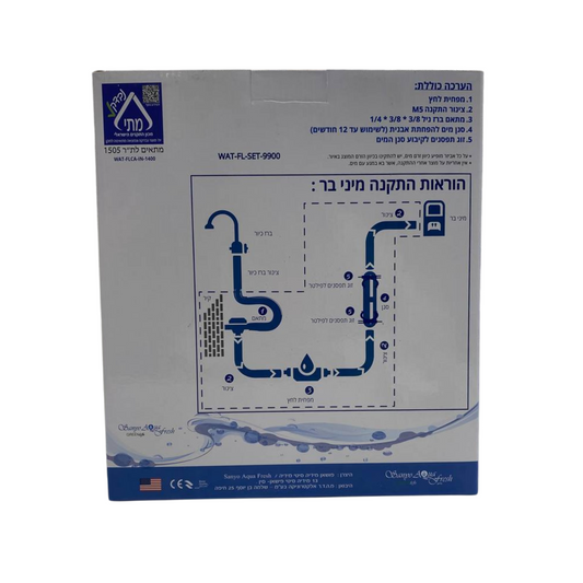 ערכת התקנה למיני בר, הכוללת: מפחית לחץ, צינור התקנה, מתאם ברז ניל, סנן מים ותפסנים