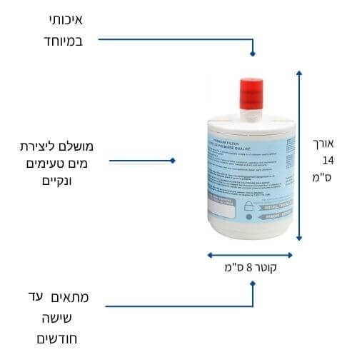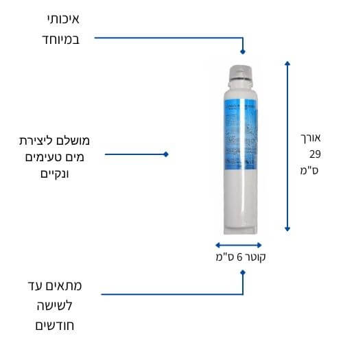 מסנן מים למקרר סמסונג - לטיפול במזהמים, כימיקלים ומניעה של משקעי אבנית, עומד בתקן אמריקאי NSF42