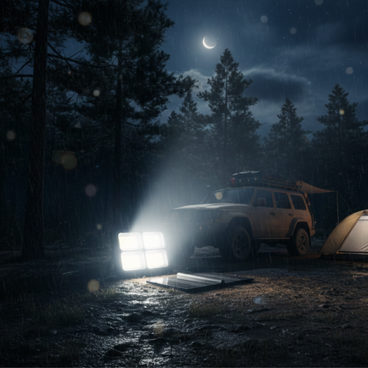 פנס סולארי 50W מתקפל UXI BL-930 – תאורת שטח 4 פנלים, טעינה מהירה ופונקציית Power Bank עוצמתית