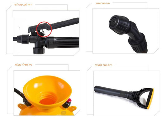 מרסס ידני מקצועי, 5 ליטר איכותי ועמיד במיוחד כולל ידית התזה מתכווננת, מתאים להשקיה וריסוס