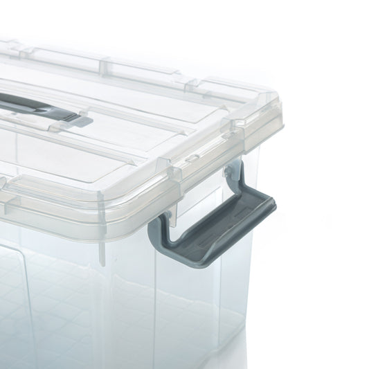 קופסת אחסון שקופה 7 ליטר, במידות 32X22X19 ס"מ, כולל מכסה לסגירה וידית נשיאה נוחה