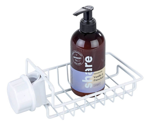 מתקן אחסון חזק ואיכותי להתקנה על ברז לאביזרי ניקוי ורחצה-לבן