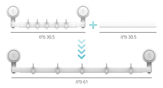 מתלה מגבות לתלייה בואקום, המתלה באורך הניתן לשינוי – 30.5 ס"מ או 61 ס"מ, יכול לשאת עד 10 ק"ג