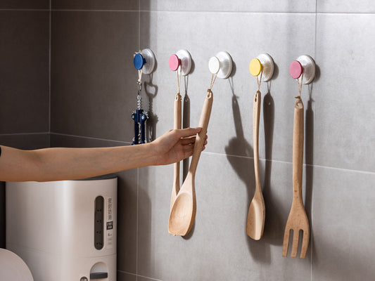 סט 6 מתלי ואקום צבעוניים, פתרון נקי ומסודר ללא צורך בקידוח, כל אחד יכול לשאת עומס של עד 5 ק"ג