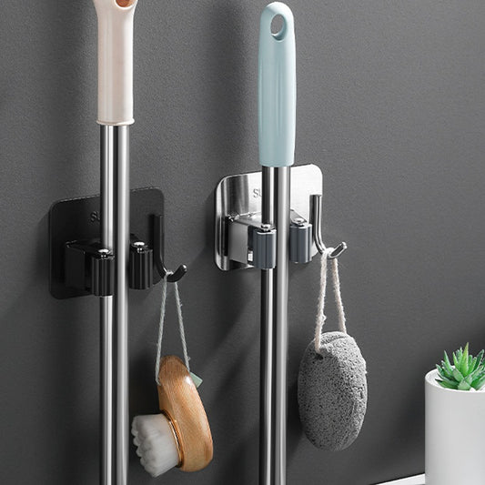 מתלה אוניברסלי נדבק, פתרון נוח ופשוט לארגון כלי ניקוי ואביזרים בבית, ללא צורך בקידוח, צבע שחור