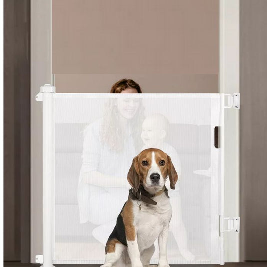 שער בטיחות נשלף לכלבים עשוי רשת בצבע אפור, איכותי ביותר, רוחב מקסימלי 1.5 מטר