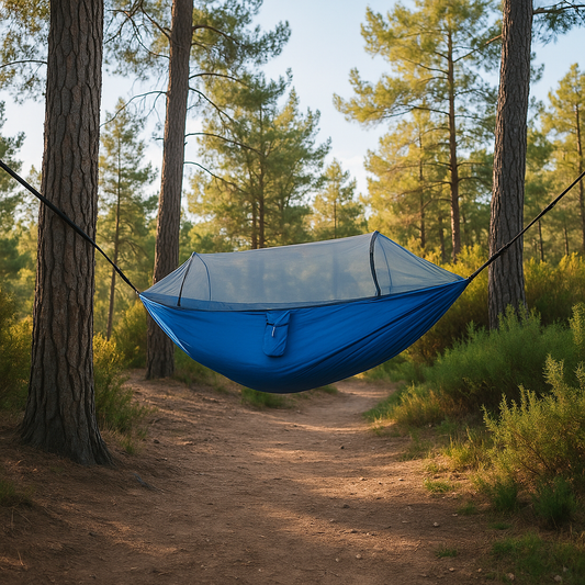 ערסל גדול וחזק במיוחד, כולל רשת מובנת להגנה מפני יתושים וחרקים, מסופק עם חבלי קשירה