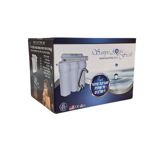 מערכת טיהור מים 4 שלבים (3+1) למניעת אבנית, כלור + אביזרים, נבדק ואושר ע"י מכון התקנים הישראלי