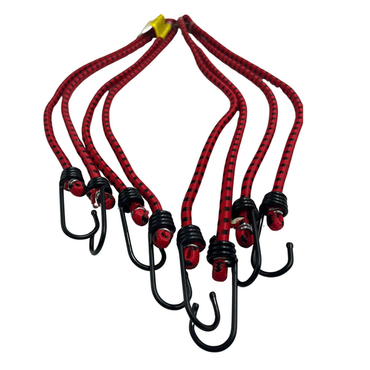 8 גומיות לקשירה בטיחותית של מוצרים ברכב ובבית, חוזק עד 7 ק"ג, אורך כל יחידה 60 ס"מ ועובי 8 מ"מ