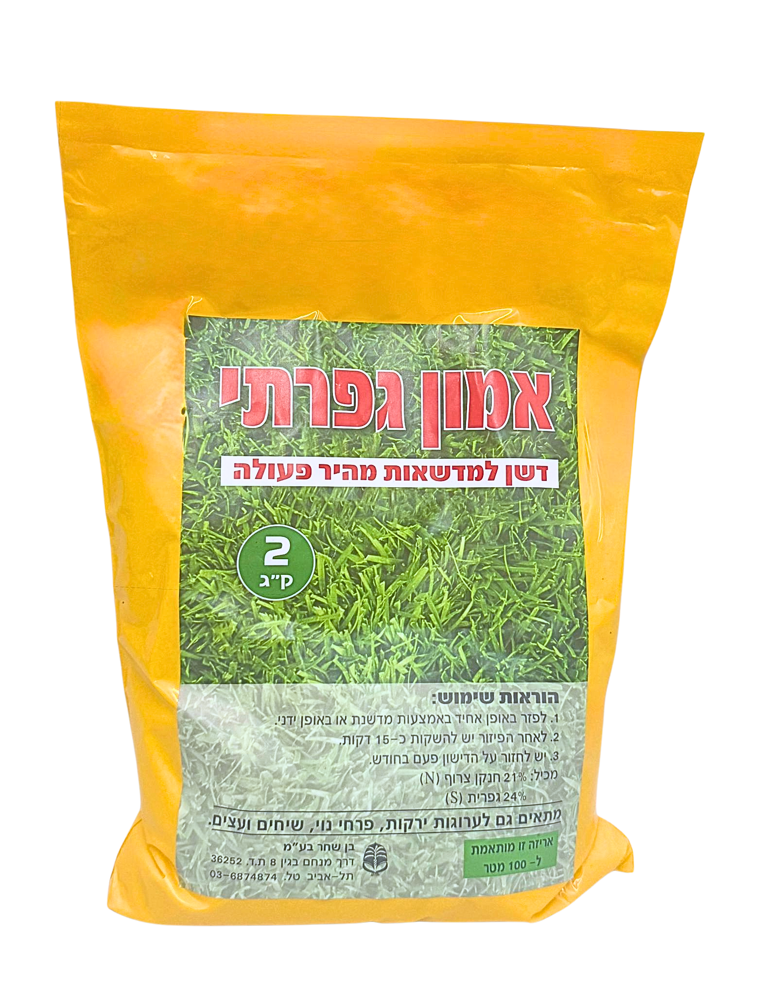 דשן אמוניה אמון גופרתי 2 ק"ג, מורכב מ-21% חנקן ו-24% גופרה, למדשאות,ירקות ועצים