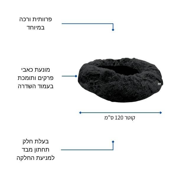 מיטה פרוותית לכלב שחורה 120 ס''מ רכה ומחממת מותאמת לשהייה ארוכה ותומכת