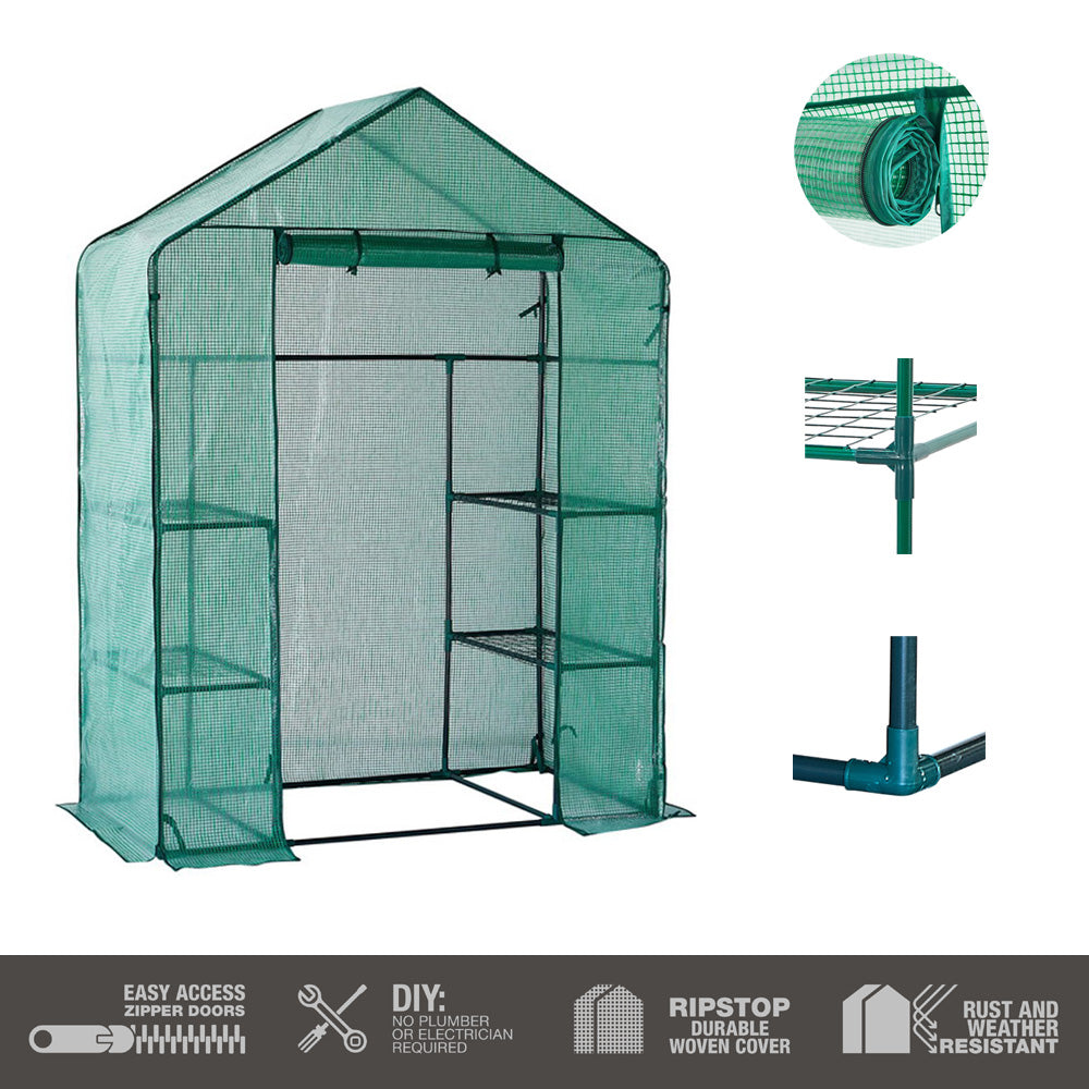 חממה ביתית עמידה עם יריעת פלסטיק ו־4 מדפים – מידות: 195×143×73 ס"מ