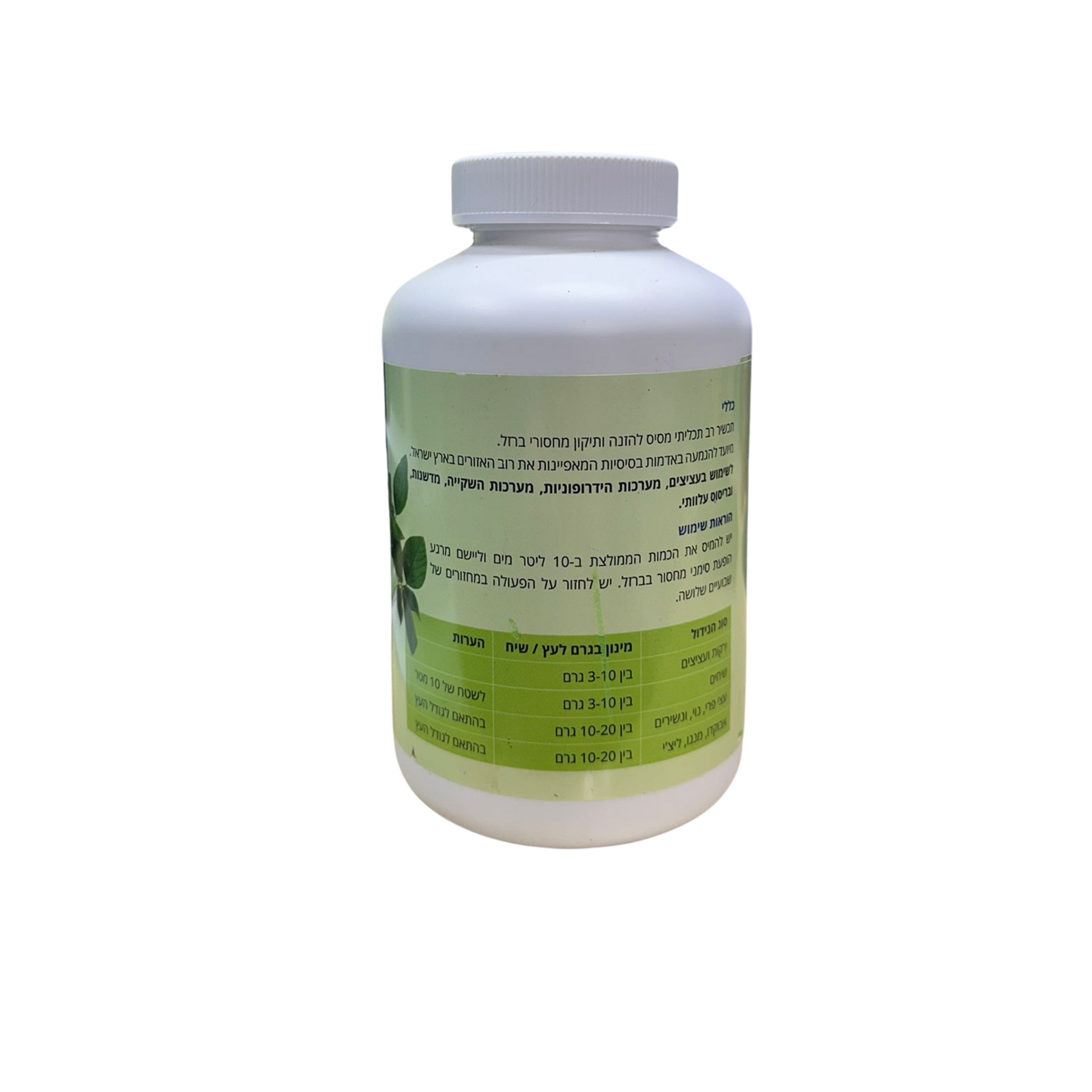 אופן שימוש: המסה במים בהתאם למינון המומלץ והשקה ישירה לאדמה או ריסוס על העלים. מתאים לשימוש לאורך כל העונה.