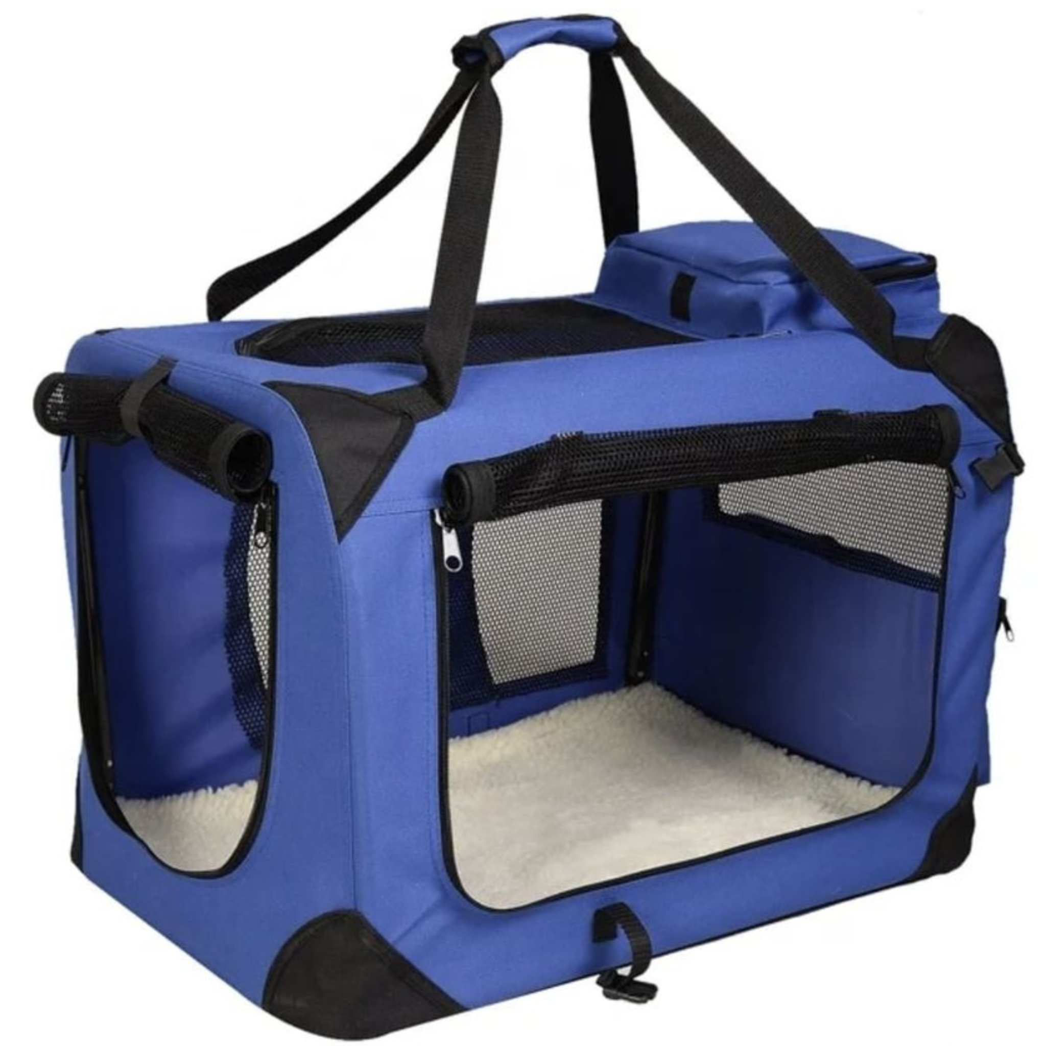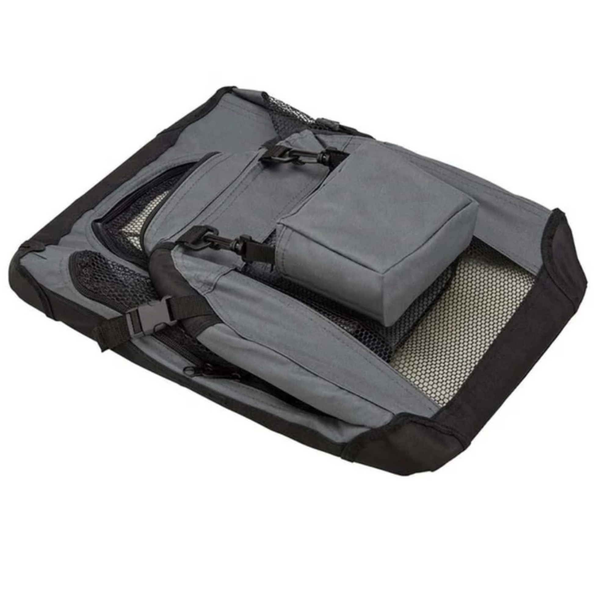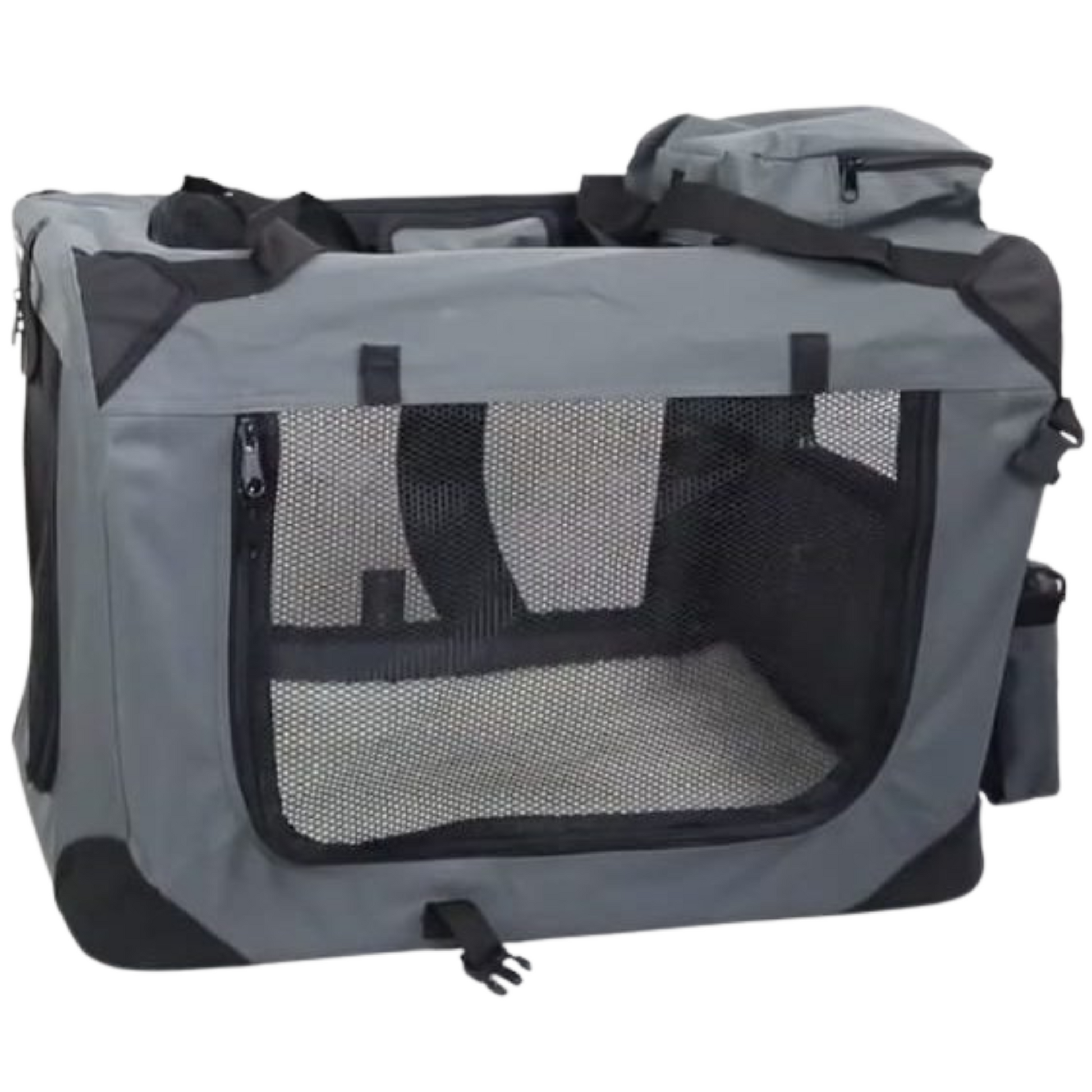 כלוב הנשיאה מצוין בחלונות רשת לאוורור, כיסים לאחסון של ציוד הכלב כמו רצועה, קולר וכו.