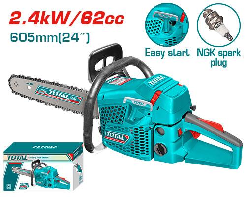 מסור שרשרת בנזין מקצועי TOTAL – 62 סמ״ק, להב 24 אינץ׳, עוצמתי ועמיד במיוחד