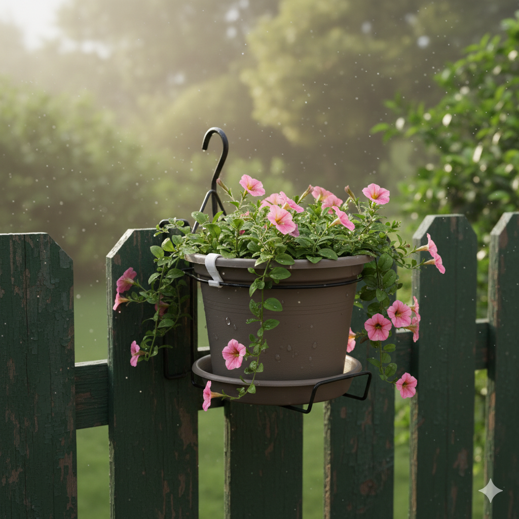 כולל: עציץ, מתקן ברזל לתלייה ותחתית ניקוז