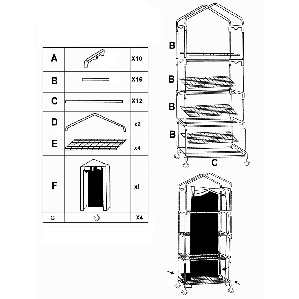 - ארבע קומות של מדפים מחוזקים להנחת מגוון שתילים ועציצים בו זמנית