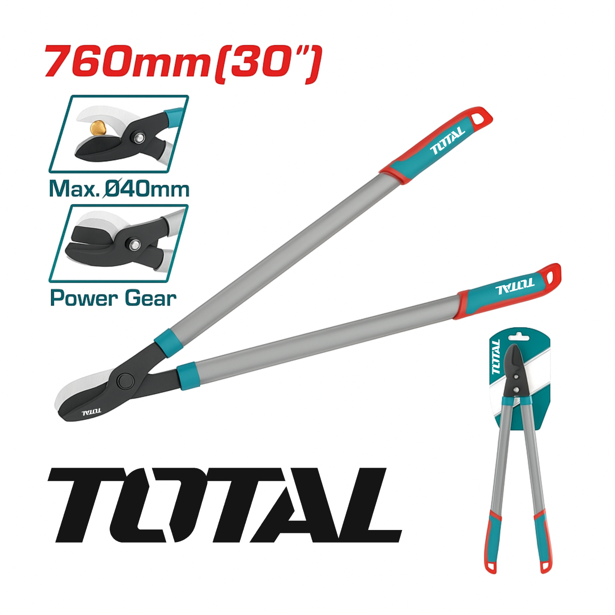 גוזם ענפים מקצועי מבית TOTAL, באורך כולל של כ-760 מ"מ, מיועד לגיזום מדויק וקל של ענפים עבים וצפופים.