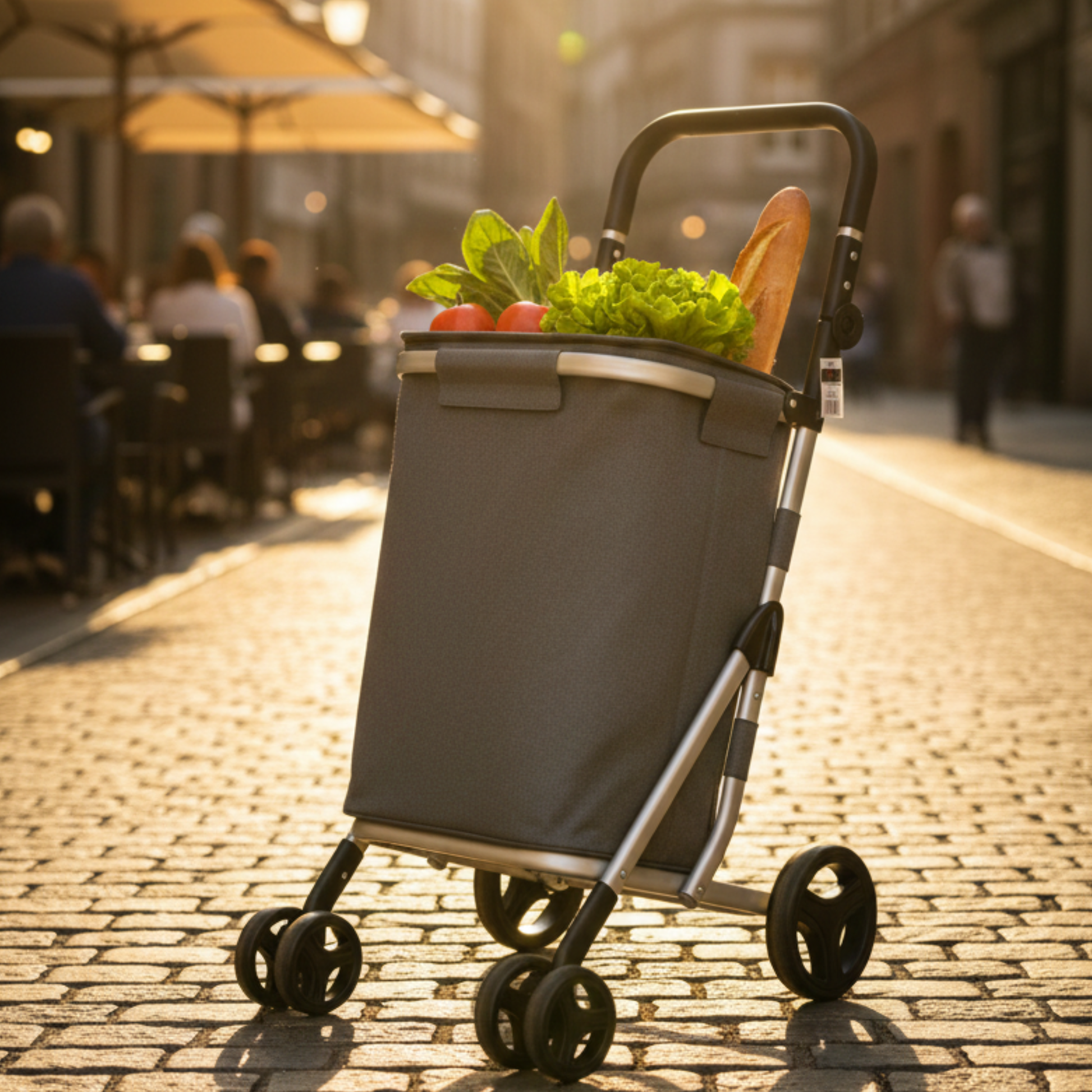 העגלה מגיעה מוכנה לשימוש – פשוט פותחים את המבנה המתקפל עד לנעילה מלאה. את התיק התרמי ניתן להלביש ולהסיר בקלות באמצעות רצועות החיבור. ארבעת הגלגלים מעניקים יציבות ותנועה חלקה גם על מדרכות, אבנים משתלבות ומשטחים לא אחידים. לאחר סיום השימוש, מקפלים את העגלה בתנועה מהירה ומחזירים לאחסון.