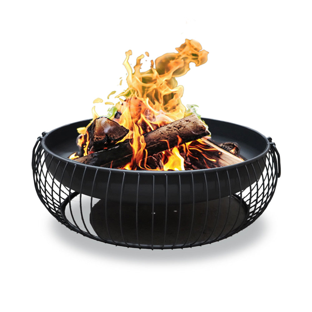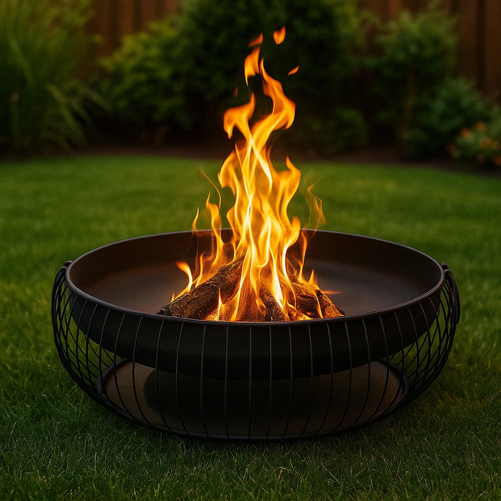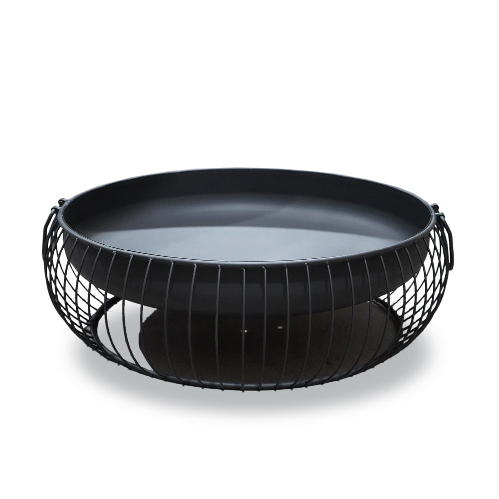 קערת מדורה איכותית בעיצוב מודרני, עשויה מתכת בעובי 1.0 מ"מ עם גימור שחור עמיד בחום של עד 700 מעלות. הקערה יושבת בתוך מסגרת ברזל מרושתת עם בסיס עגול יציב, וניתנת לשליפה קלה לצורך ניקוי ותחזוקה. זוג ידיות צד מאפשרות נשיאה נוחה והזזה פשוטה.